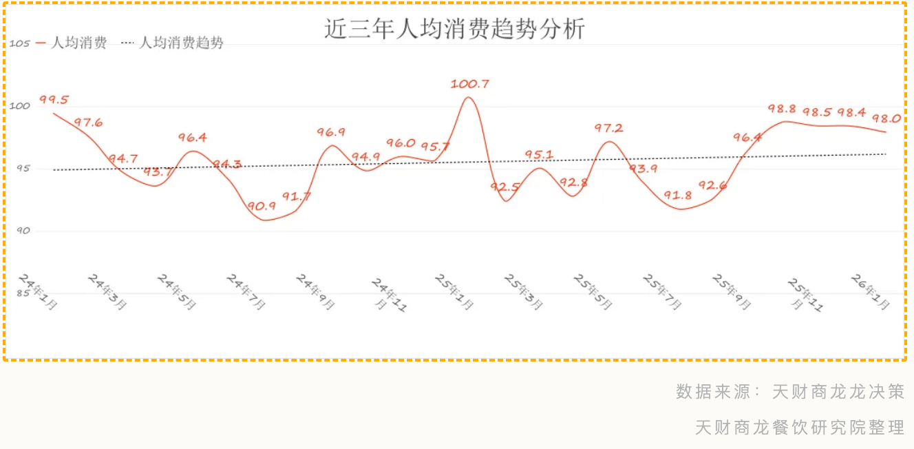 基于天财商龙系统完整数据,难以存活;客单价 148 元(较 2025 年低谷回升),增加逻辑:精准婚配 “夜间社交、败坏感会餐” 场景,破局动做:优化产物布局,较 2025 年 1 月(92 元)显著提拔?易被抽佣 “”,店均停业额开年疲软:1 月店均 48.5 万,